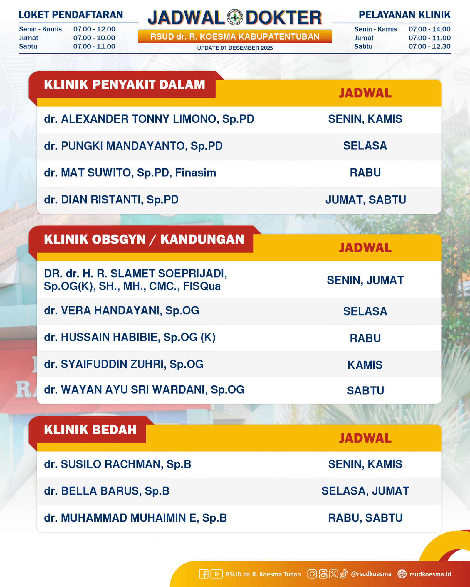 Temukan berbagai fasilitas modern dan pelayanan terbaik yang kami sediakan, mulai dari pemeriksaan kesehatan menyeluruh, penanganan jantung, hingga terapi canggih tanpa operasi. Semua untuk memberikan solusi kesehatan yang terpercaya bagi Anda dan keluarga.